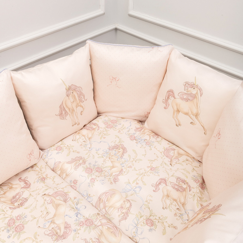 В комплектеПростыня на резинке, Подушка, Одеяло, Наволочка, Пододеяльник, Бортик (бампер)