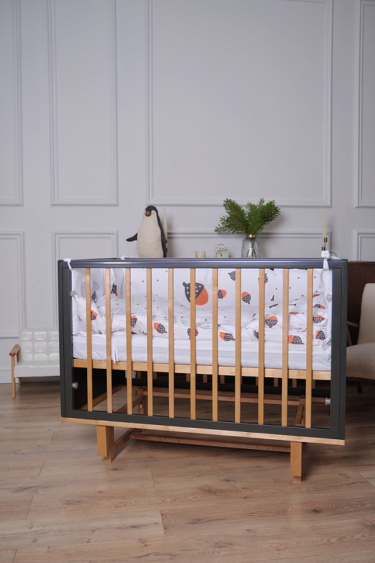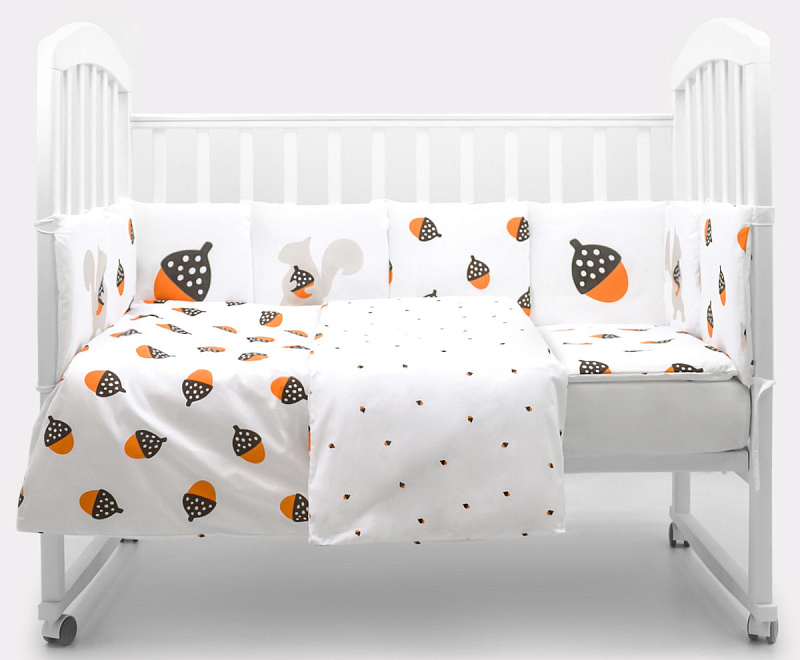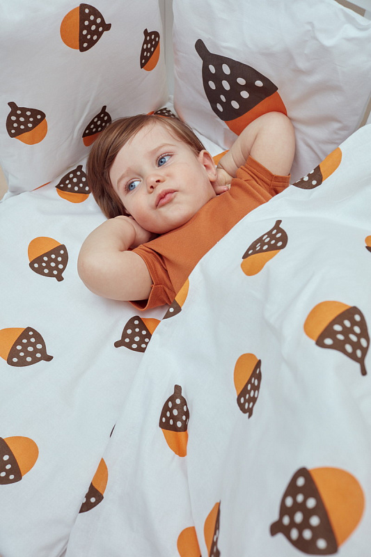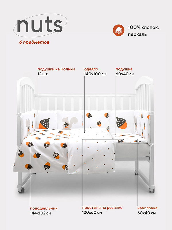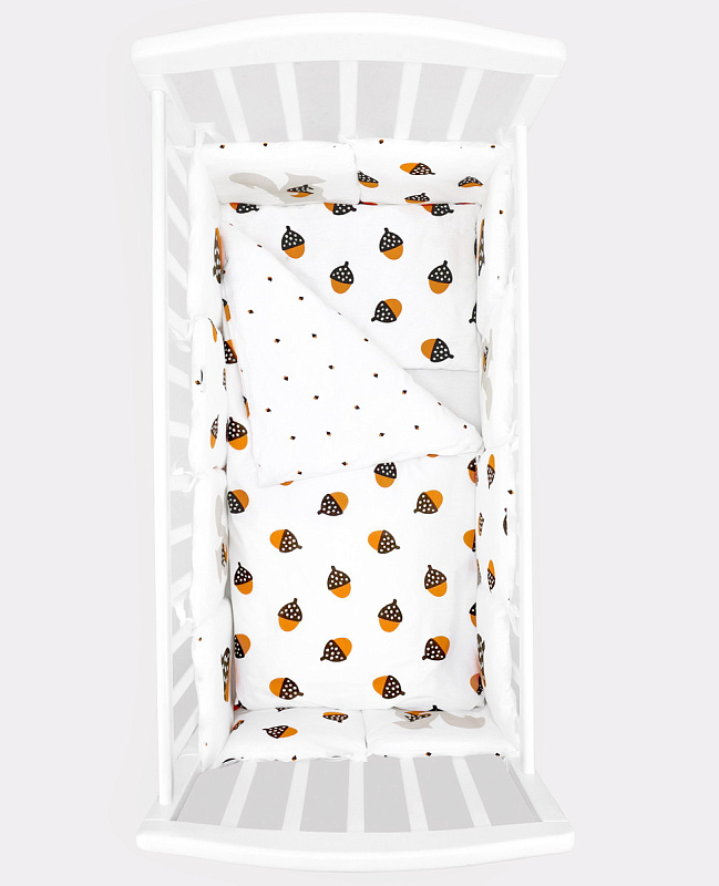 Засыпать с комфортом малышу поможет детское постельное белье RANT NUTS (6 ПРЕДМЕТОВ). Дизайнерский принт в виде разноформатных орешков украшает пододеяльник (включая тыльную сторону), наволочку и бортики.