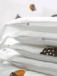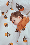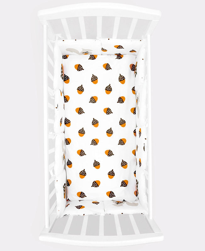 спокойный дизайнерский принт в виде разноформатных орешков украшает пододеяльник (обе стороны), бортики и наволочку.