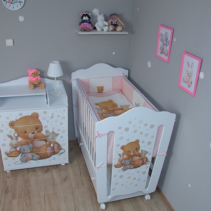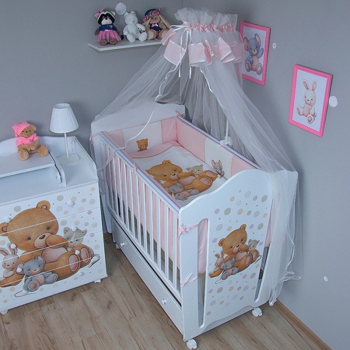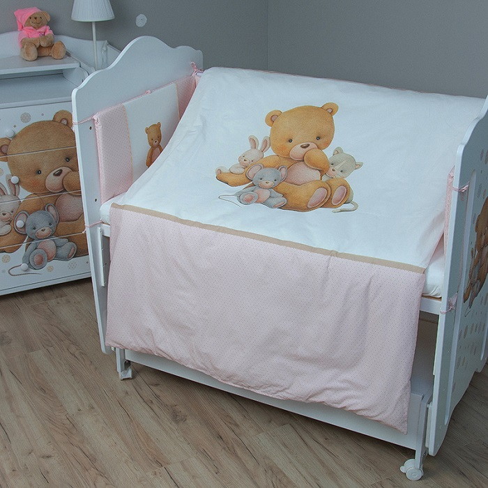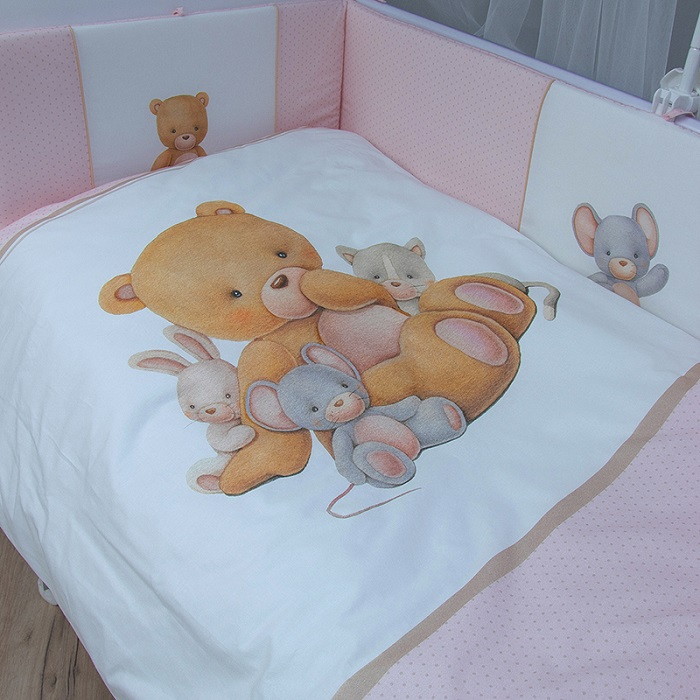 Комплект в кровать Vikalex Мишкина Компания горох 6 пр. розовый