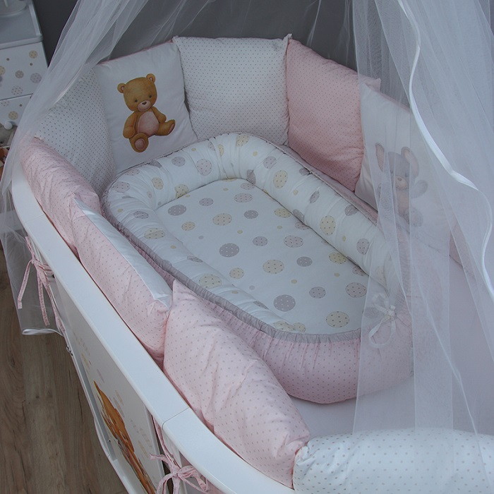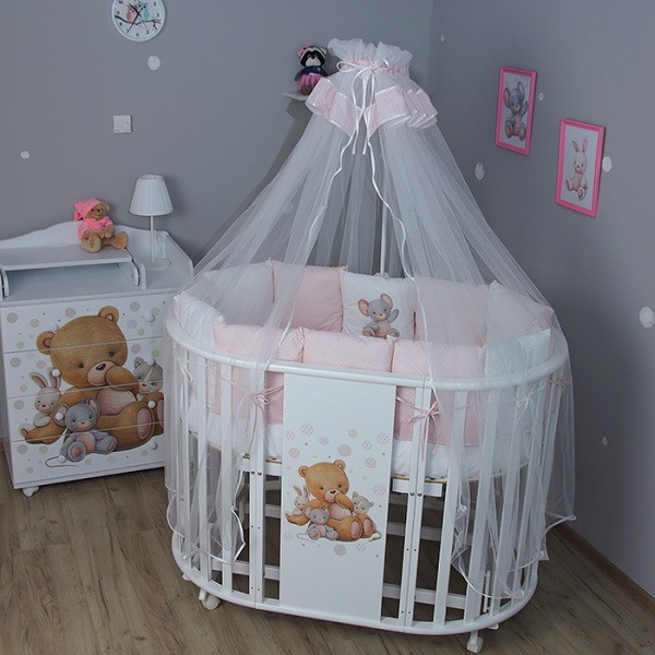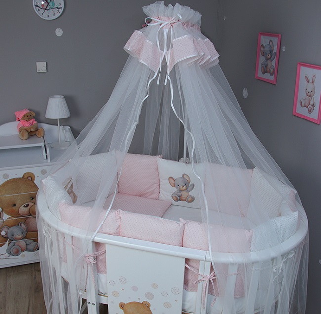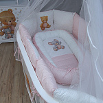 Комплект в кровать Vikalex Мишкина Компания горох для овальной кроватки 6 пр. розовый