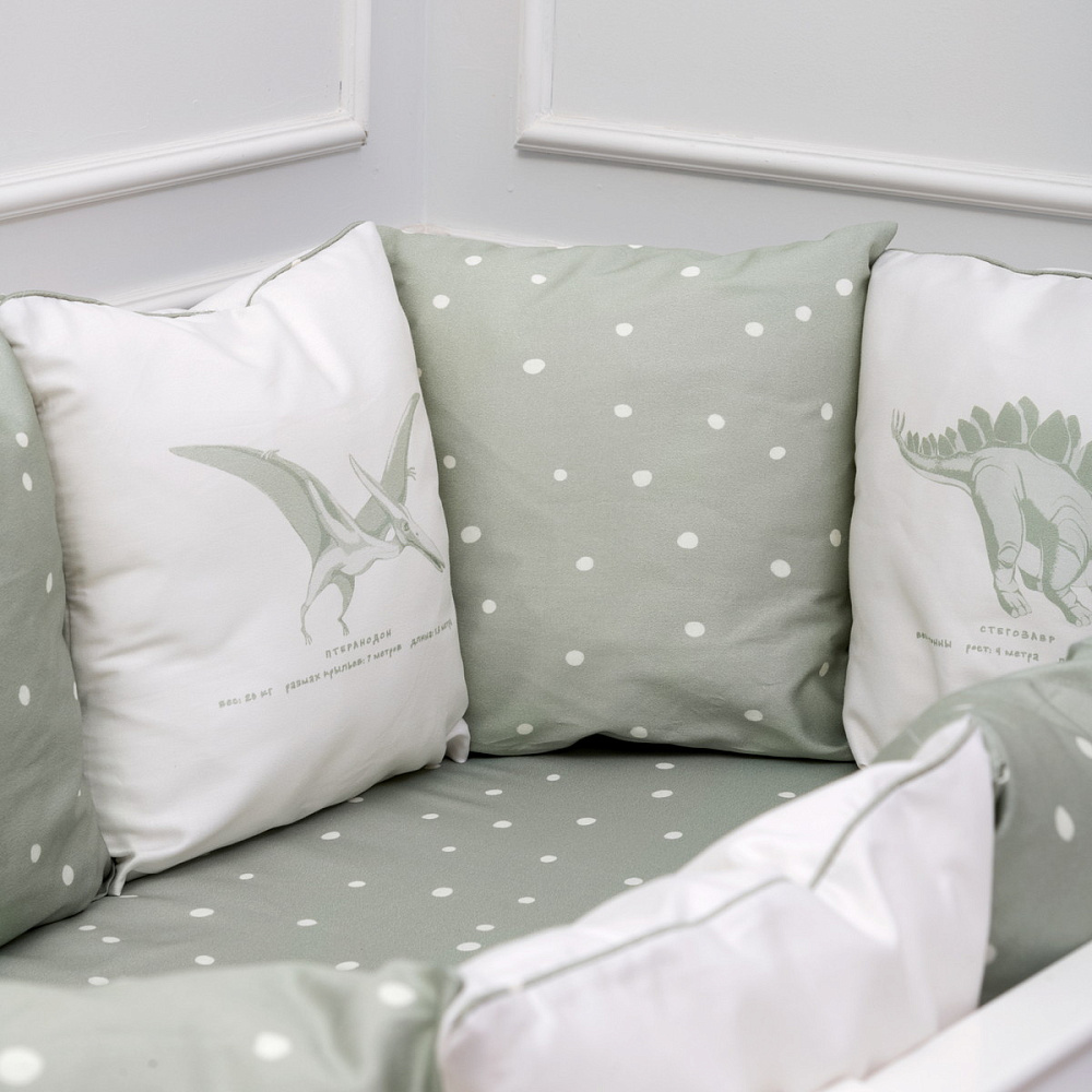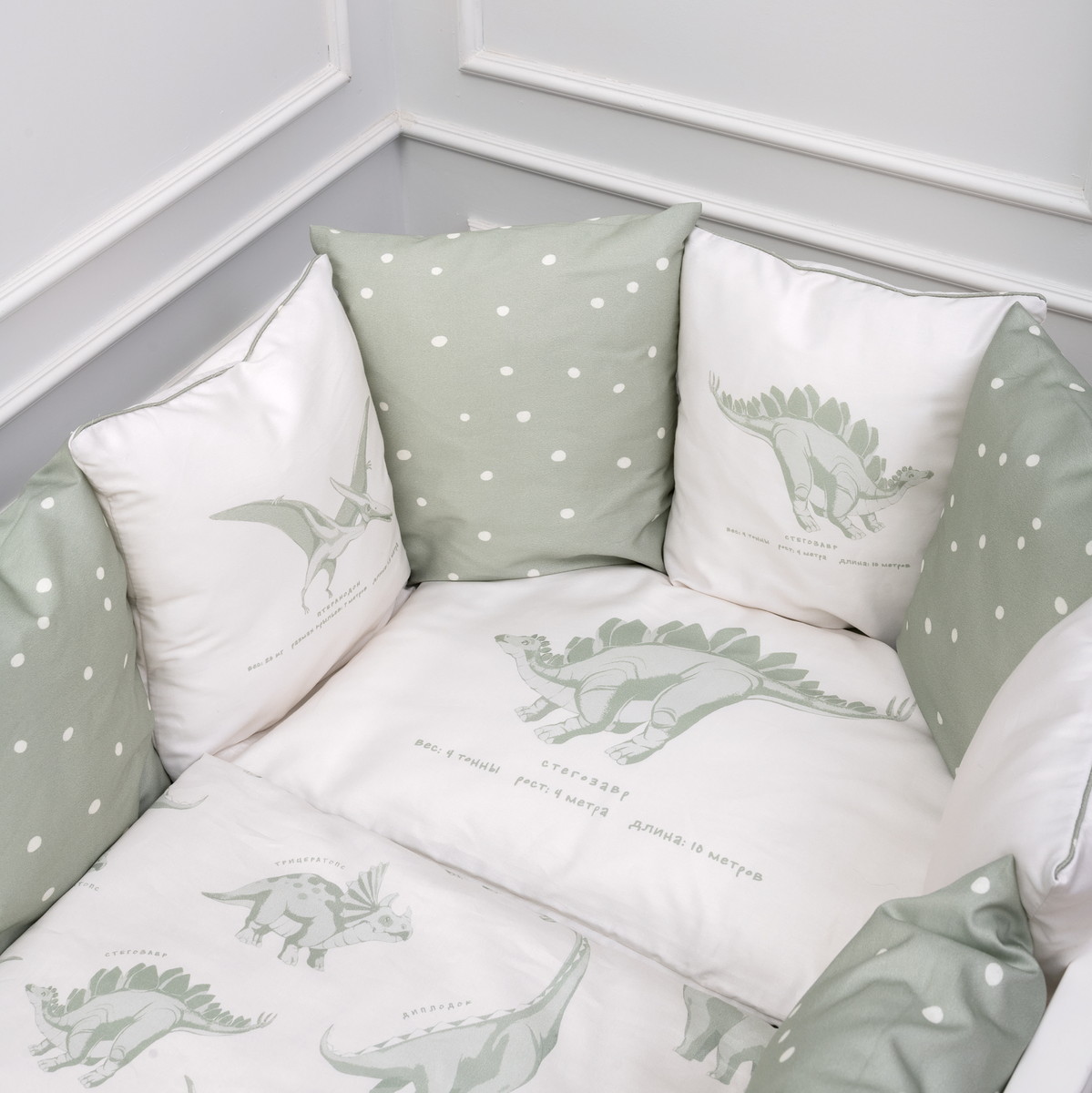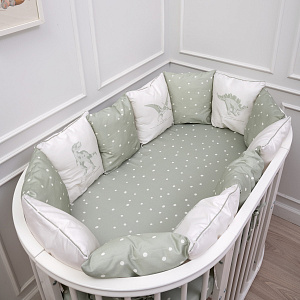 Комплект в кроватку Lappetti Дино сафари для овальной и прямоугольной кроватки 6 пр. 6150 зеленый-белыйНет оценокХарактеристики