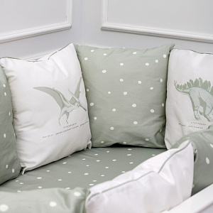 Бортик, состоящий из 12 мягких подушечек (30х30 см) со съемными чехлами, словно маленькие оазисы безопасности и уюта.