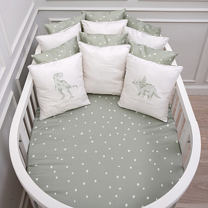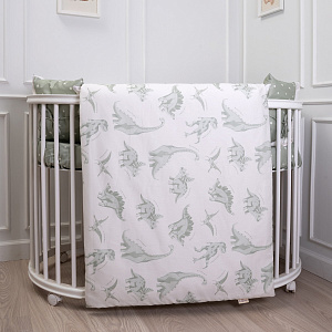 Погрузитесь в мир сладких снов с комплектом в детскую кроватку Lappetti "Дино сафари"! Этот нежный ансамбль, созданный для овальных и прямоугольных кроваток, соткан из премиального сатина (100% хлопок) и наполнен теплым холлконом.