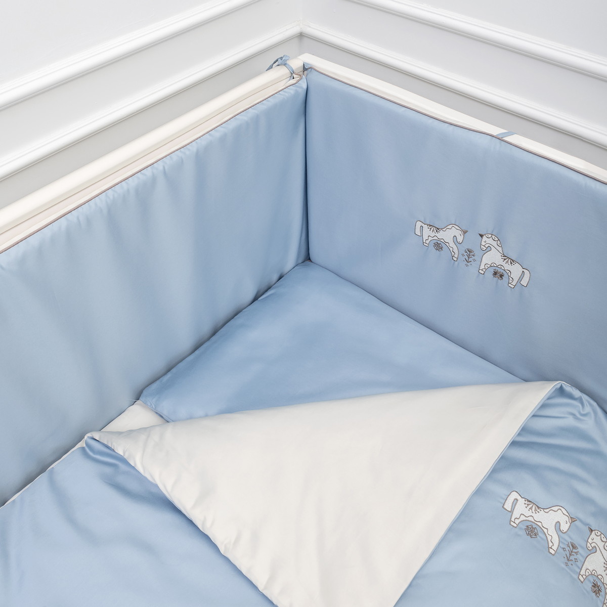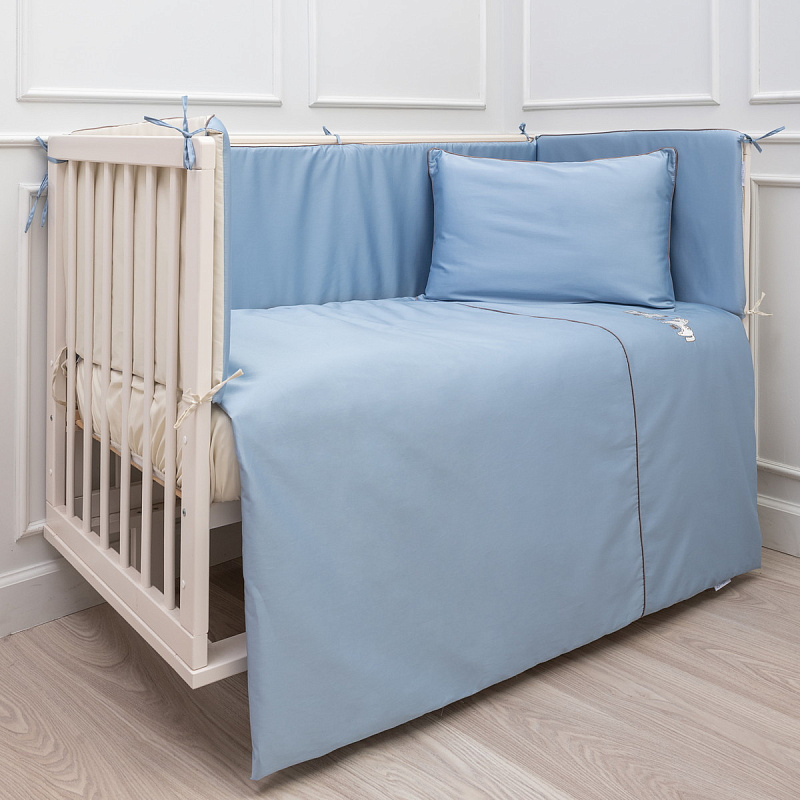 В комплектеПростыня на резинке, Подушка, Одеяло, Наволочка, Пододеяльник, Бортик (бампер)