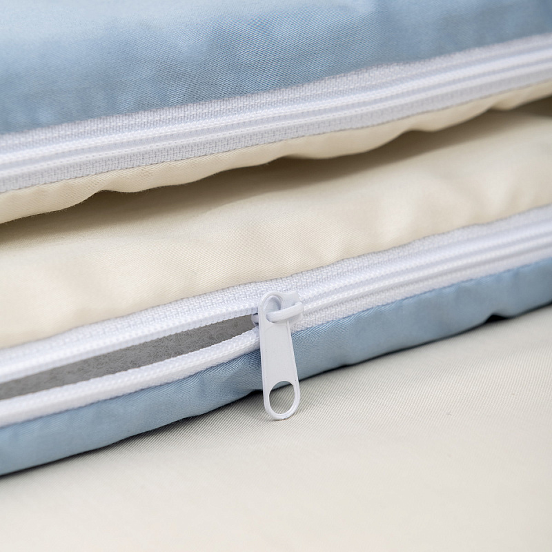 Одеяло (140х110 см) и подушка (60х40 см), наполненные бамбуковым волокном (40%) и холлконом (60%) плотностью 250 г/кв.м, обеспечат здоровый и крепкий сон.