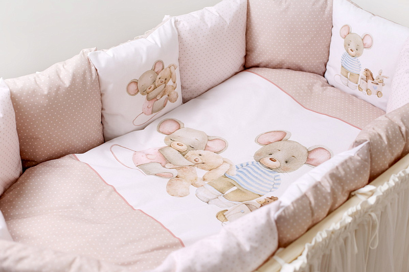 Комплект в кроватку Lappetti Little mouse для овальной кроватки 6 предметов кофейныйНет оценокХарактеристики