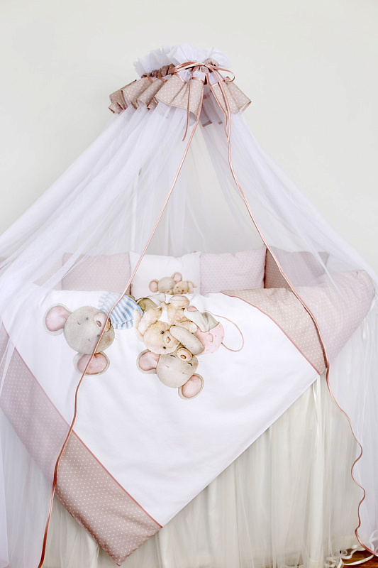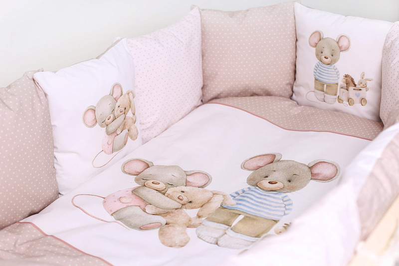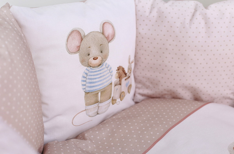 Комплект в кроватку Lappetti Little mouse для овальной кроватки 6 предметов кофейный