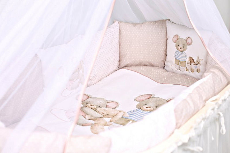 Комплект в кроватку Lappetti Little mouse для овальной кроватки 6 предметов кофейный