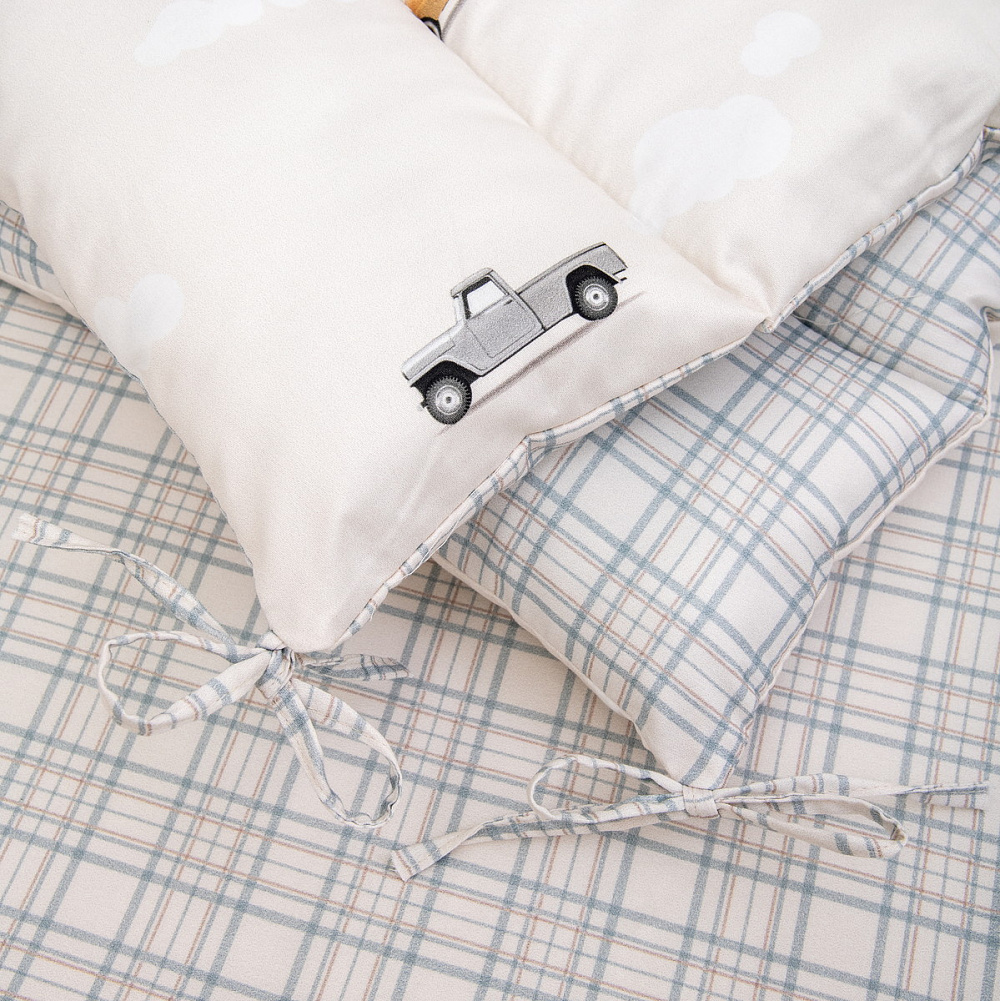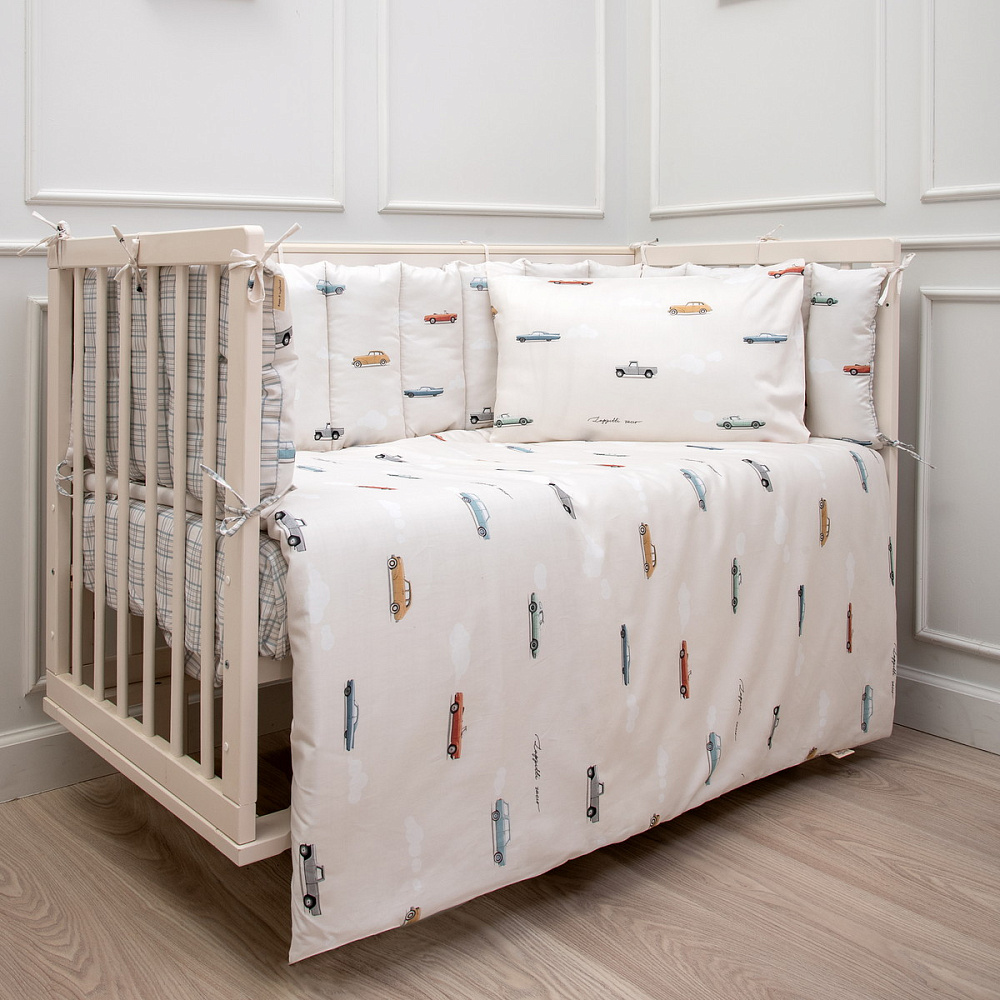 Комплект в кроватку Lappetti Маленький гонщик уни-ый, стеганные борта, премиальный сатин 6155 6 пр. серо-голубой