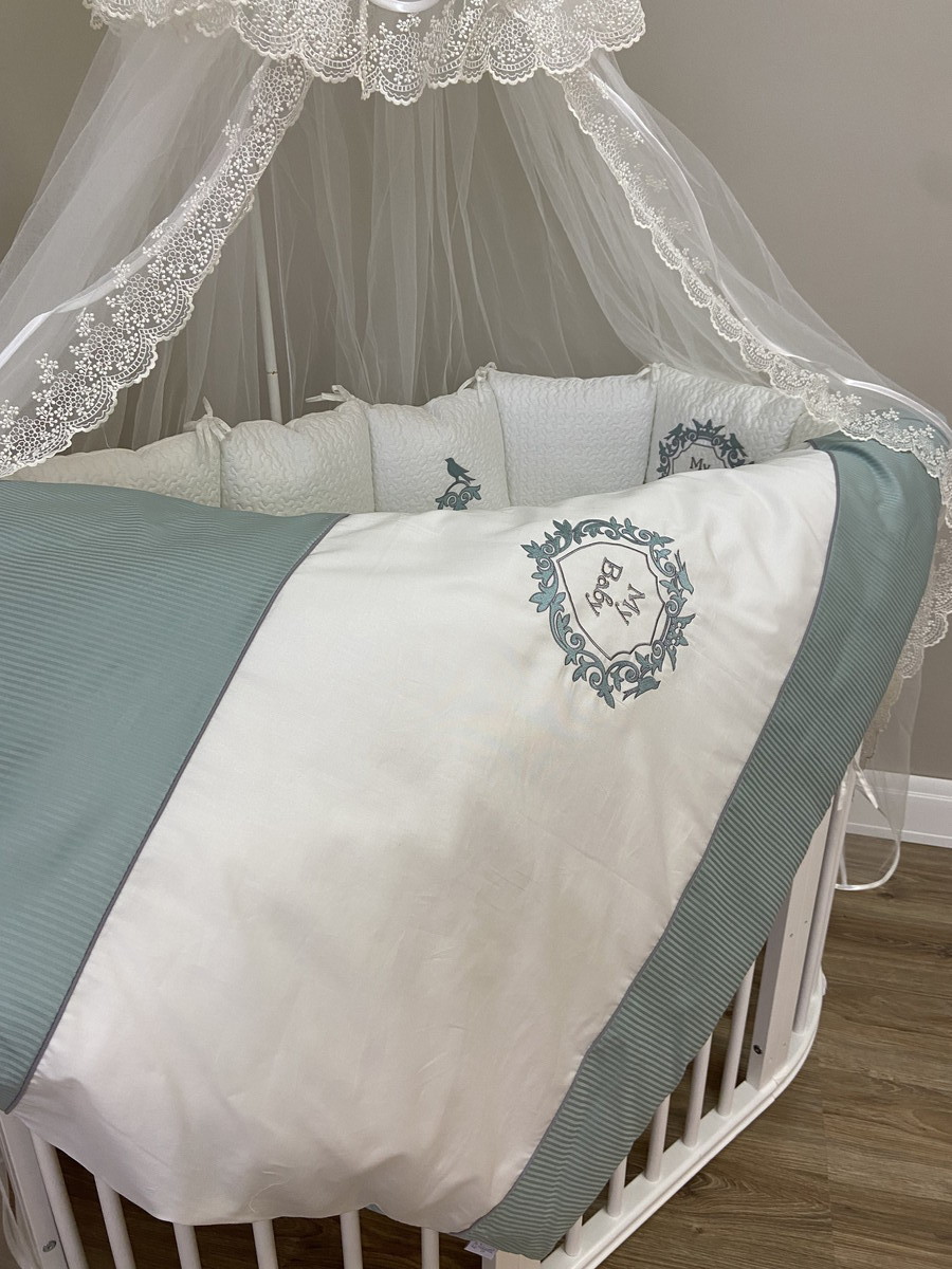 Комплект в кроватку Lappetti Мой Малыш для овальной кроватки 6 предметов мятный