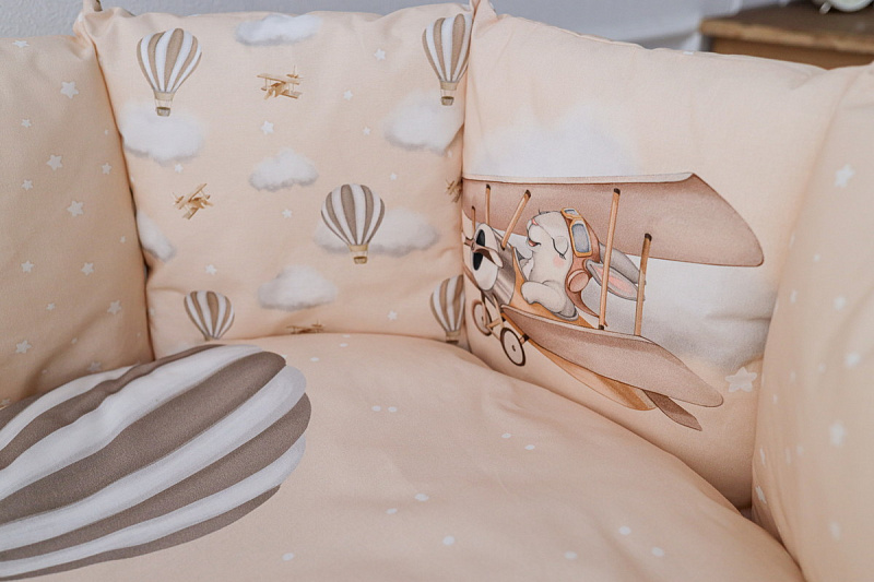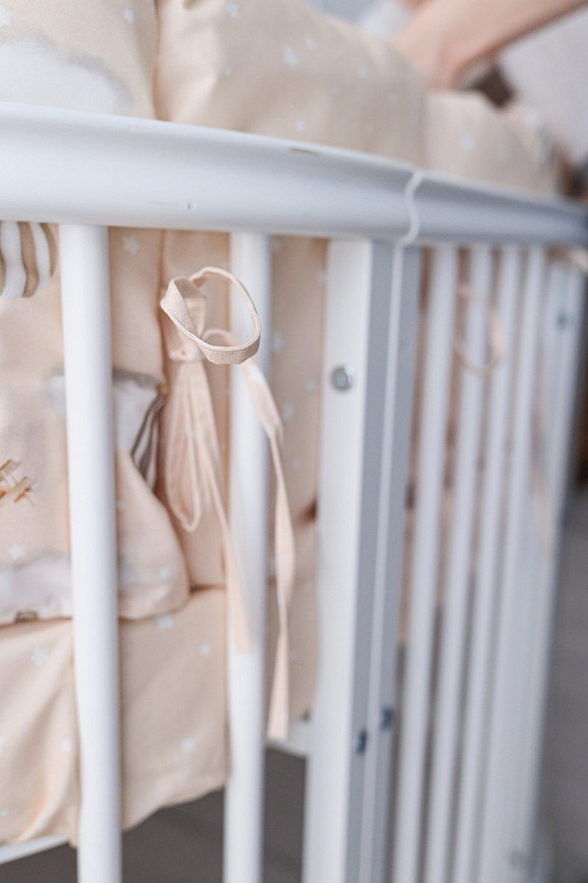 Комплект подойдет в детскую кроватку любой формы. Мягкие подушки предотвратят застревание ног и рук между рейками кровати. Выполнен из гипоалергенных материалов. Перед исользованием рекомендована стирка.