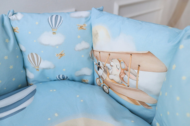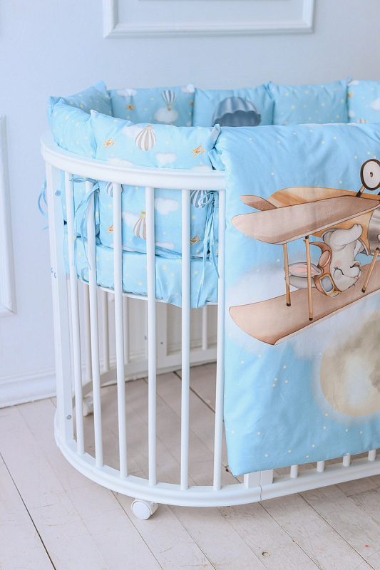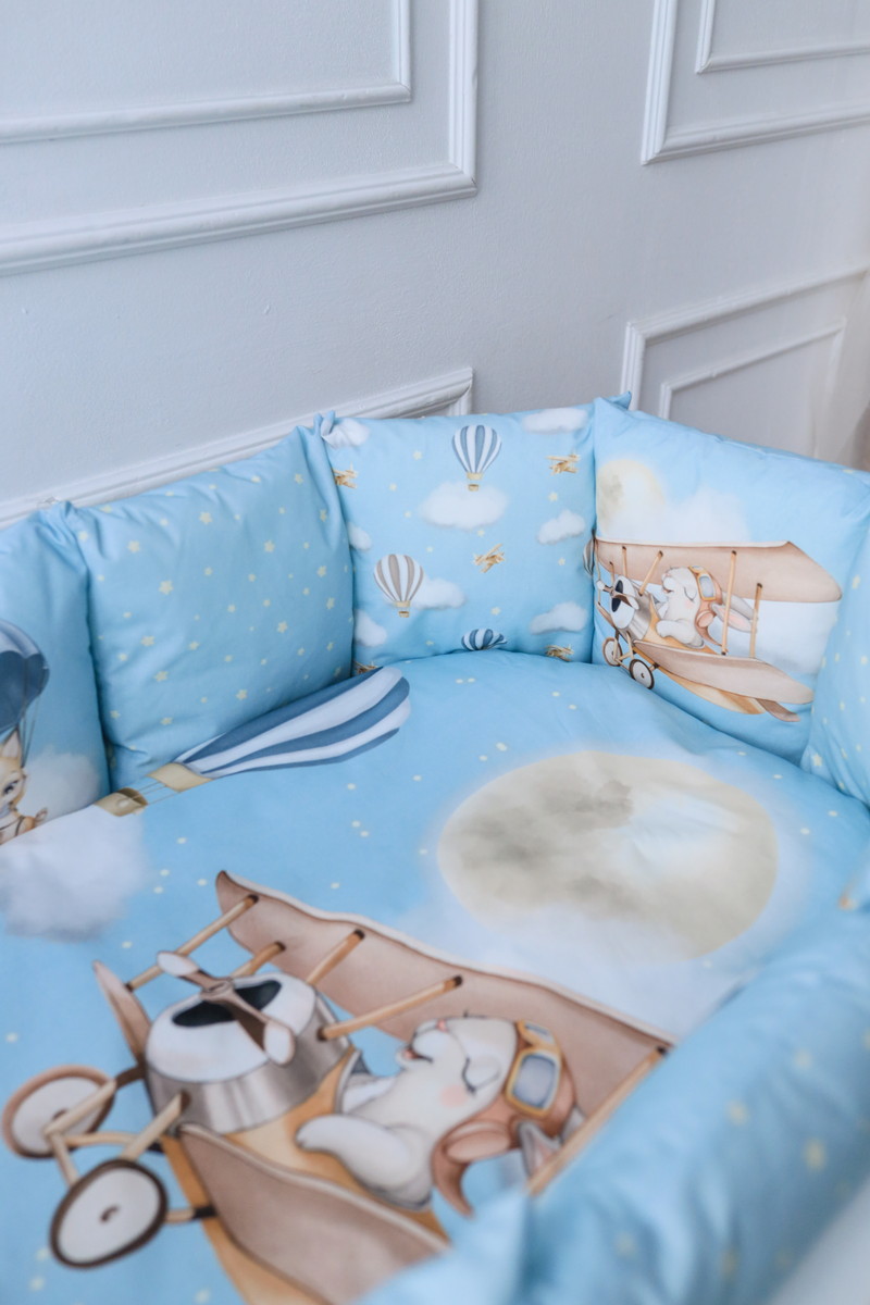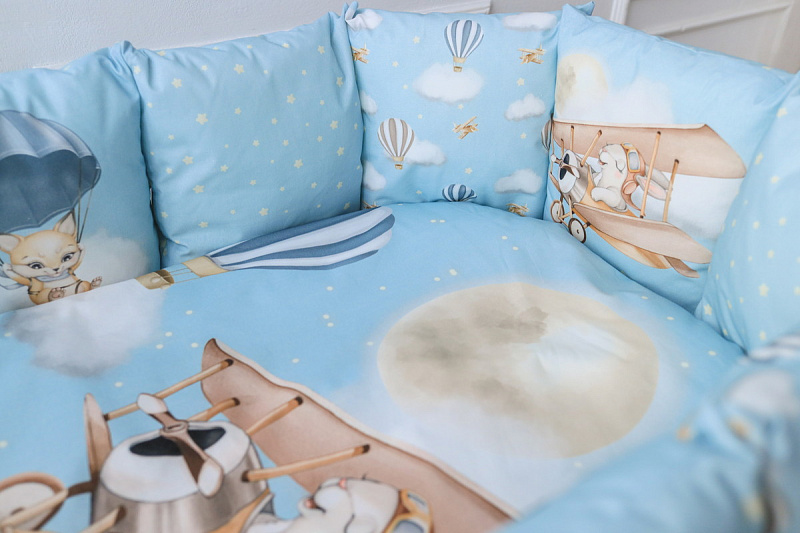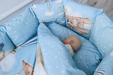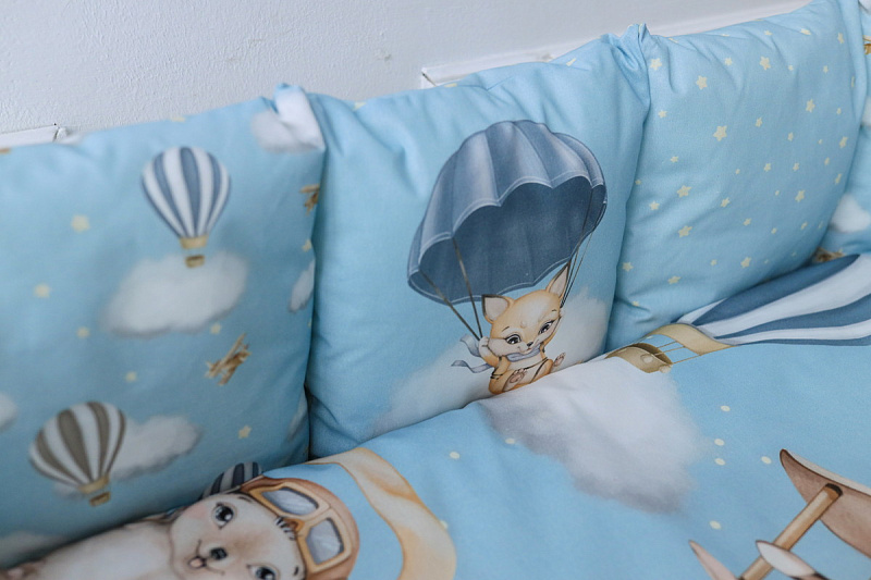 Комплект подойдет в детскую кроватку любой формы. Мягкие подушки предотвратят застревание ног и рук между рейками кровати. Выполнен из гипоалергенных материалов. Перед исользованием рекомендована стирка.