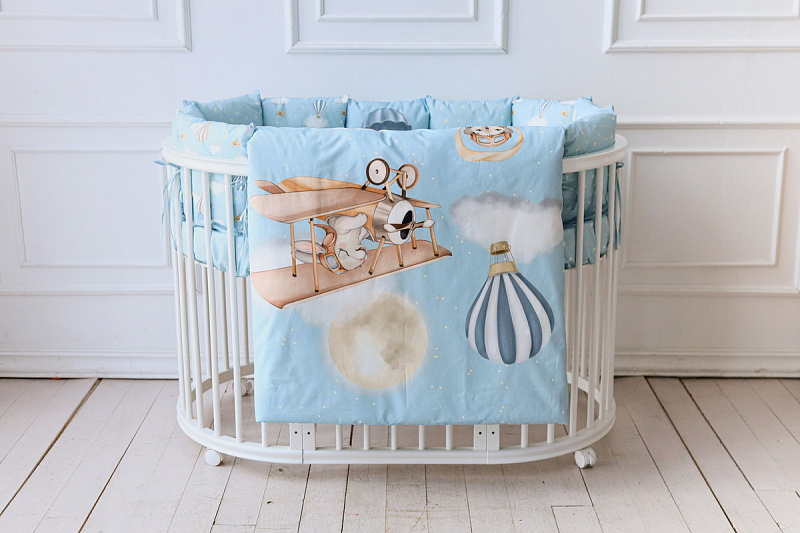 Комплект в кроватку Lappetti Навстречу приключениям для овальный кроватки 6 предметов голубойНет оценокХарактеристики