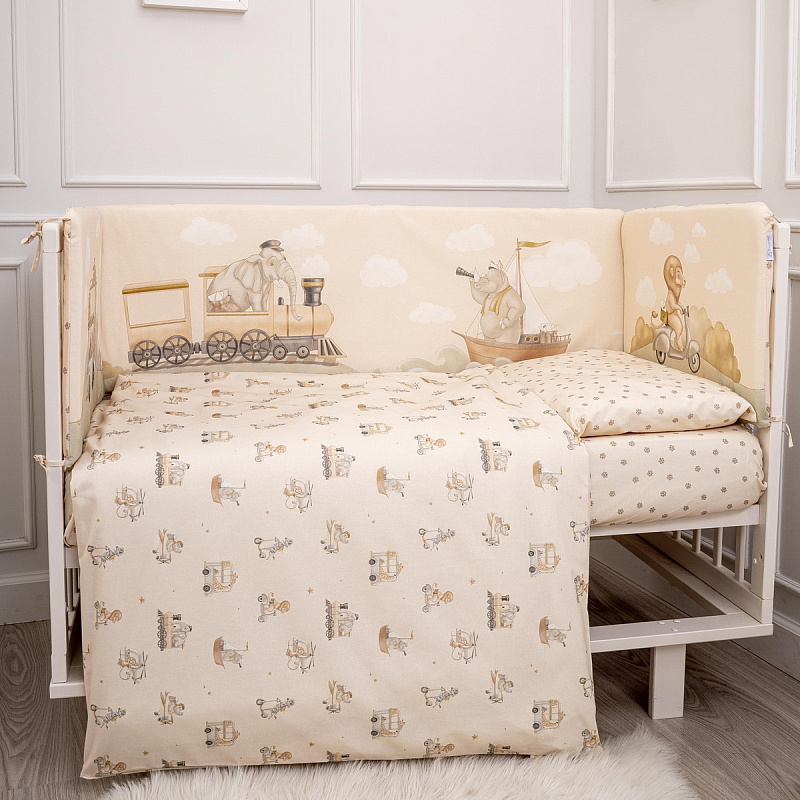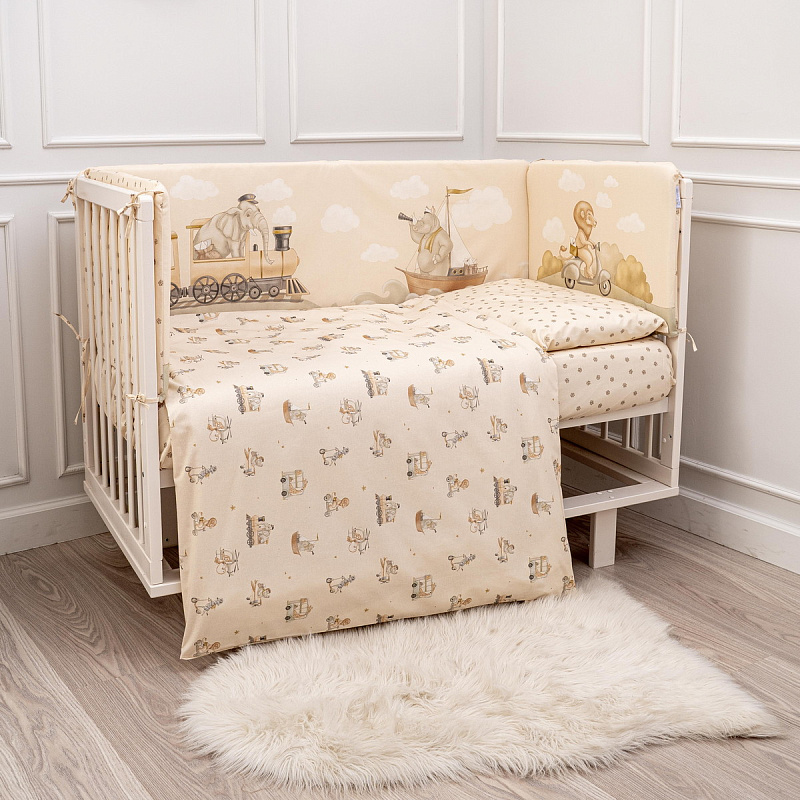 В комплектеПростыня, Подушка, Одеяло, Наволочка, Пододеяльник, Бортик (бампер)