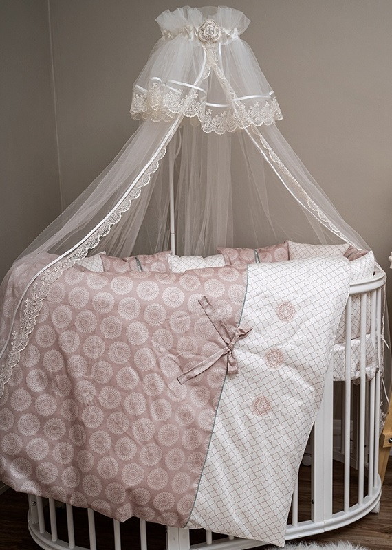 Комплект в кроватку Lappetti Ривьера для овальной и прямоугольной кроватки 6 предметов розовый