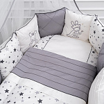 Комплект в кроватку Lappetti Звездочет для овальной кроватки 6 предметов серый