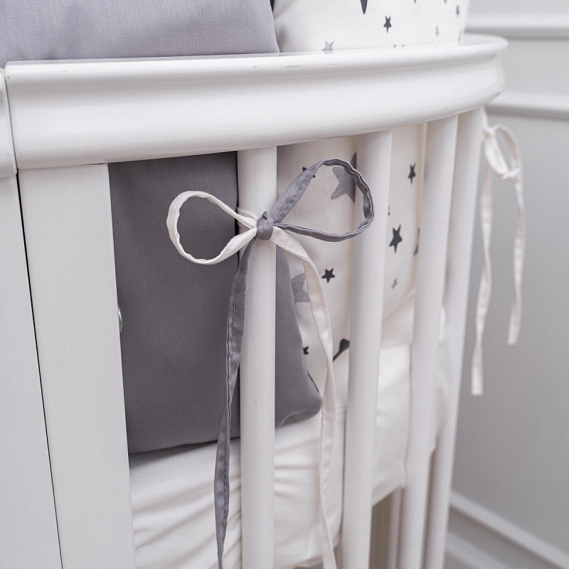 Комплект в кроватку Lappetti Звездочет для овальной кроватки 6 предметов серыйНет оценокХарактеристики