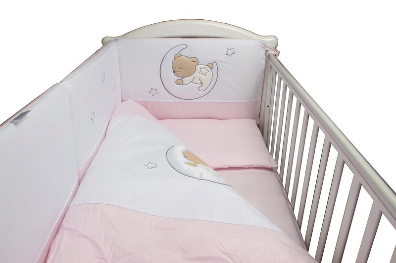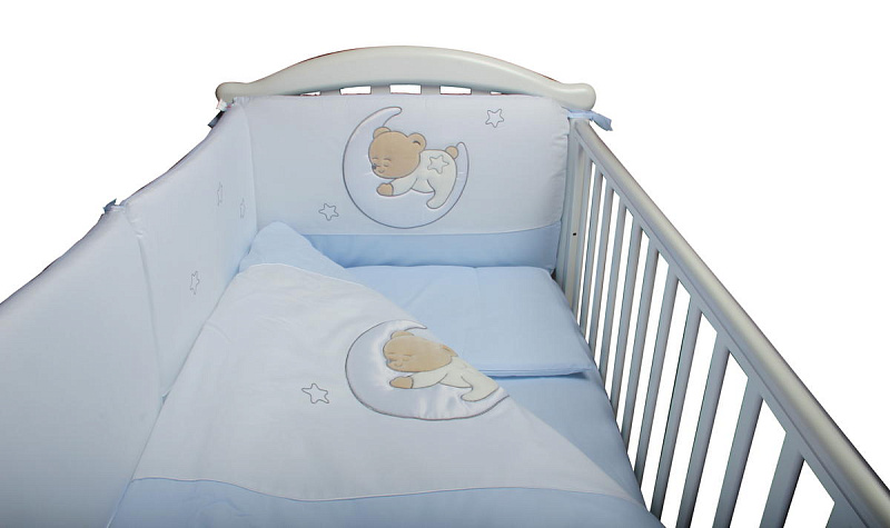 Приятные глазу цветовые сочетания помогают адаптации ребенка в новом для него мире, а декорирование забавным медвежонком, мило уснувшем на полумесяце, способствует расслаблению и сладким снам малыша.