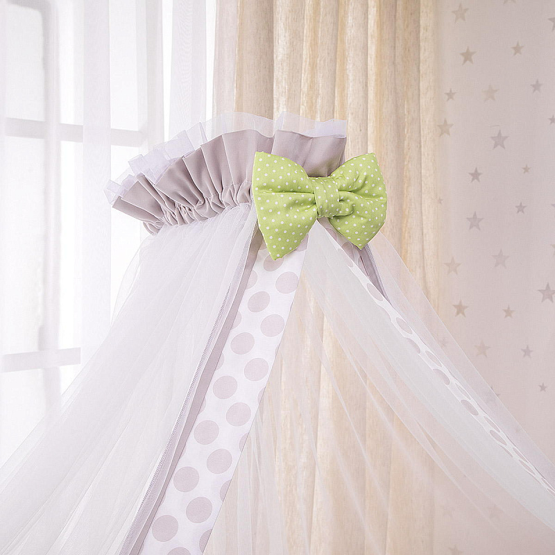 Балдахин из вуали полностью накрывает детскую кроватку, обеспечивая надежную защиту и создавая в спальне волшебную атмосферу уюта.