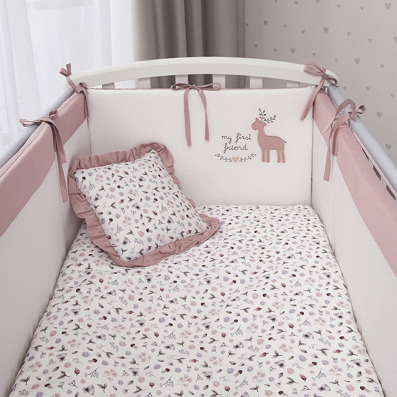 В комплектеПростыня на резинке, Подушка, Одеяло, Наволочка, Пододеяльник, Бортик (бампер)