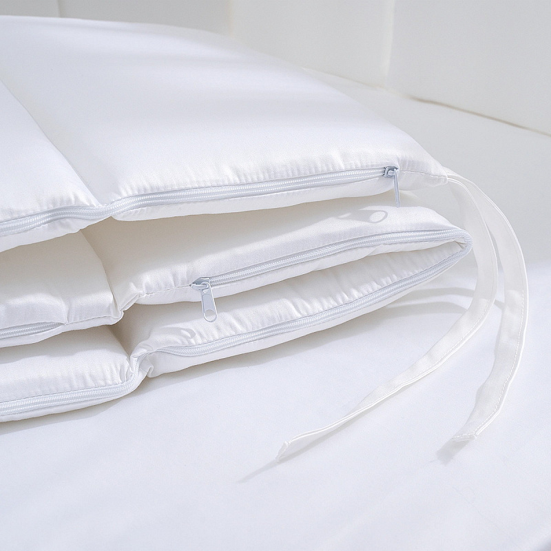 Вместо традиционной прорези в наших комплектах используется застежка-молния, которая аккуратно спрятана в нижней части пододеяльника. Обычный клапан после нескольких стирок растягивается, приобретает неряшливый вид, а застежка-молния помогает сохранить форму пододеяльника значительно дольше.