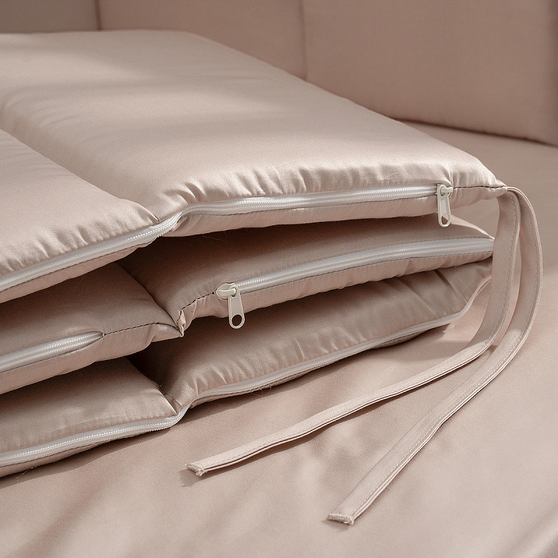 Вместо традиционной прорези в наших комплектах используется застежка-молния, которая аккуратно спрятана в нижней части пододеяльника. Обычный клапан после нескольких стирок растягивается, приобретает неряшливый вид, а застежка-молния помогает сохранить форму пододеяльника значительно дольше.