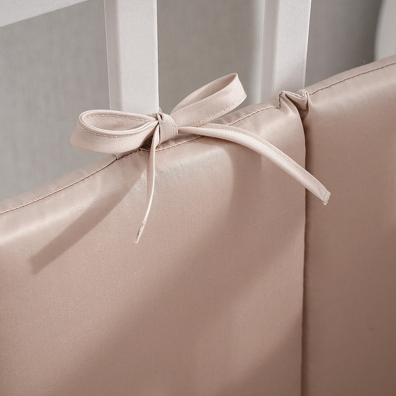 Специально к этому комплекту мы разработали бортики со съемными чехлами на молнии из двух частей: первая состоит из 6-ти подушечек, вторая - из 12-ти. Сочетание натурального хлопкового сатина и воздушного гипоаллергенного наполнителя Холлкон обеспечивает еще одно полезное свойство: подушечки хорошо пропускают воздух и поддерживают температурный баланс.