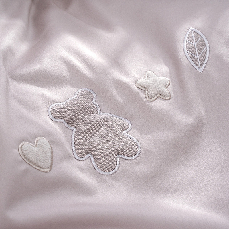 Вышивка в виде милого медвежонка, сердечка, листика и звездочки из атласных ниток придает комплекту особый шарм и уникальность. Дизайн не только радует глаз, но и развивает воображение и тактильные навыки вашего малыша.