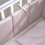 Специально к этому комплекту мы разработали бортики со съемными чехлами на молнии из двух частей: первая состоит из 6-ти подушечек, вторая - из 12-ти. Сочетание натурального хлопкового сатина и воздушного гипоаллергенного наполнителя Холлкон обеспечивает еще одно полезное свойство: подушечки хорошо пропускают воздух и поддерживают температурный баланс.