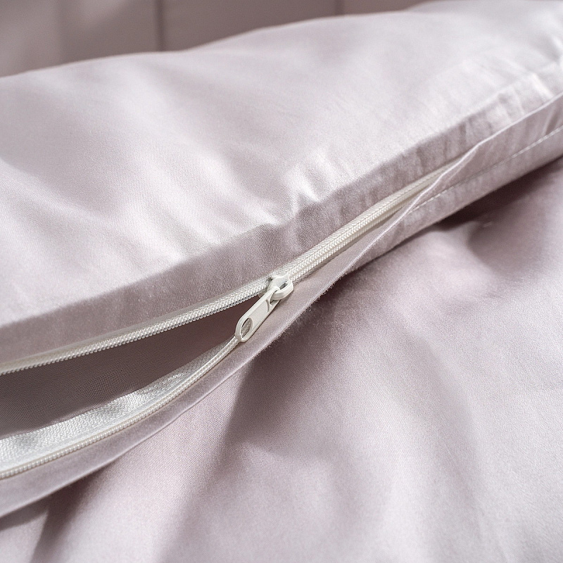 Вместо традиционной прорези в наших комплектах используется застежка-молния, которая аккуратно спрятана в нижней части пододеяльника. Обычный клапан после нескольких стирок растягивается, приобретает неряшливый вид, а застежка-молния помогает сохранить форму пододеяльника значительно дольше.
