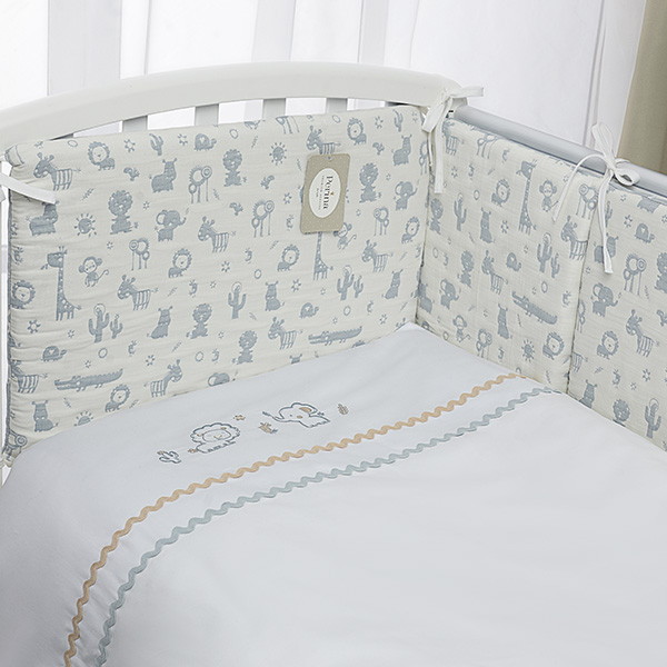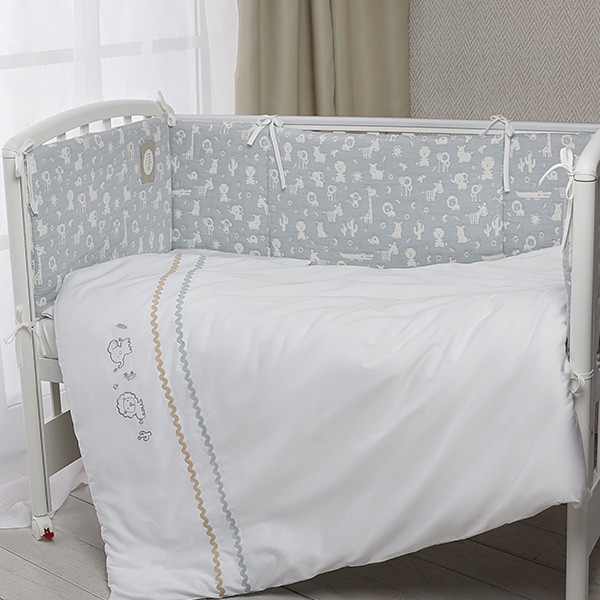Стильный комплект для кроватки размера 120х60 см. Разные фактуры постельного белья и бортиков образуют интересное сочетание, двусторонняя окраска бампера дарят свободу воображению, фактурная вышивка задает тон и обязательно заинтересует маленького первооткрывателя. В основе набора премиальный сатин, который отличается нежностью и гладкостью. Чехлы бортиков из натурального хлопка Eco Soft Cotton, который отлично пропускает воздух и долго остается как новый даже после многократных стирок. Бортики составные, это дает разные варианты использования.