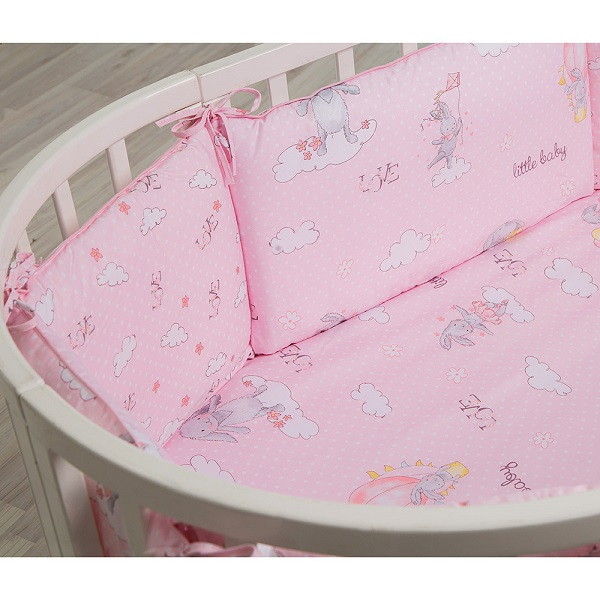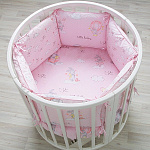 Комплект постельного белья подходит для детских кроваток любой формы. Набор изготовлен из сатина-прочного гипоалергенного материала. Чехлы съемные, за счет чего за бортиками удобно ухаживать. Яркость красок сохранится даже спустя многочисленные стирки. Бортики-подушки дополнительно украшены кантами, которые украшают и помогают сохранять форму.