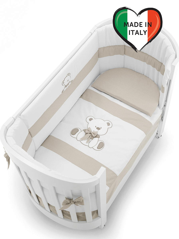 Комплект в овальную кроватку Erbesi Tato Ovale 3 предмета белый/песочный