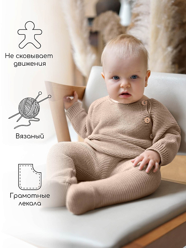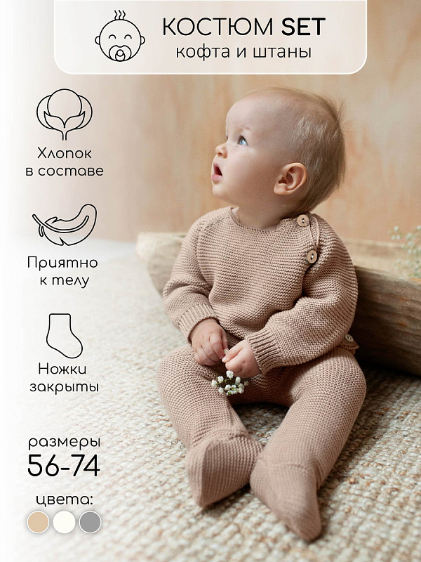 Комплект вязаный детский AmaroBaby Pure Love Set штанишки с кофточкой демисезонный бежевый 56