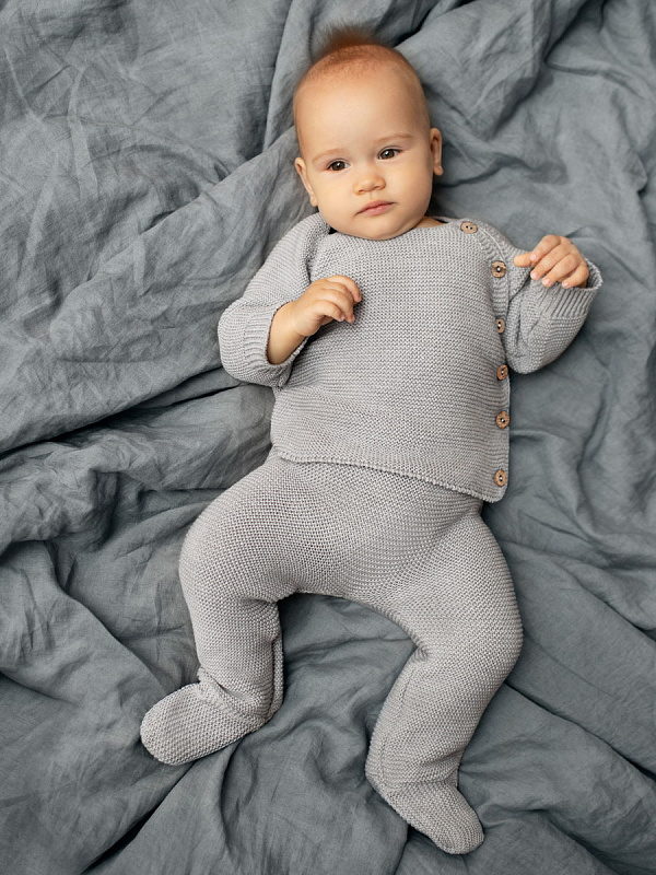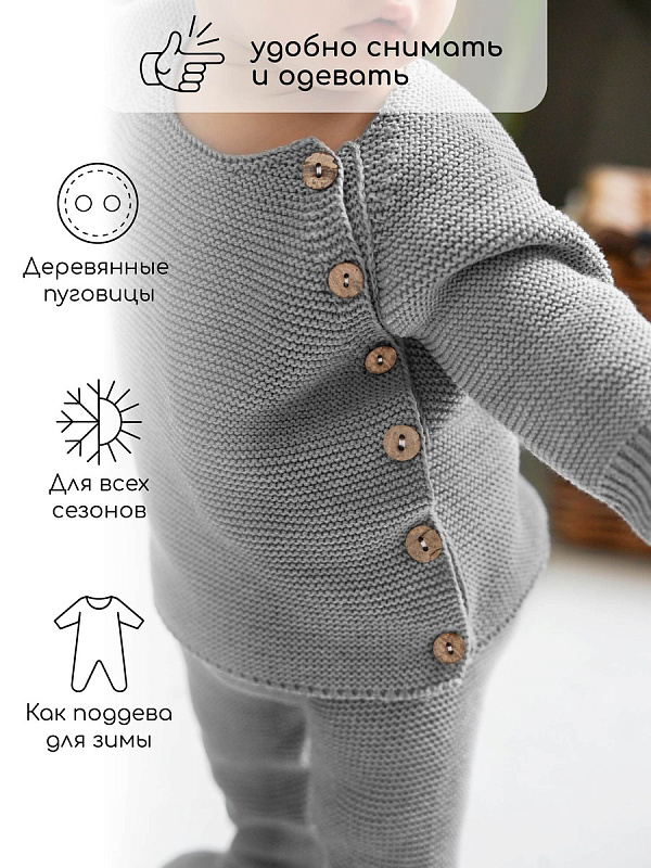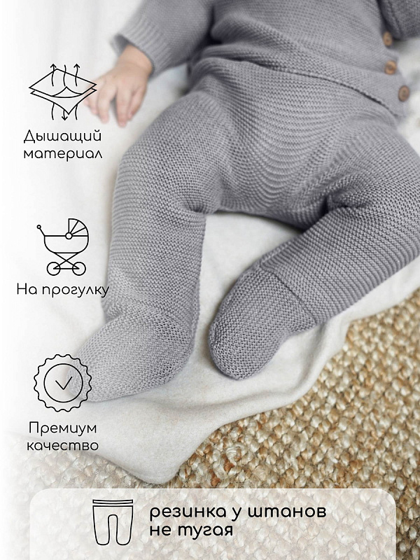 Комплект вязаный детский AmaroBaby Pure Love Set штанишки с кофточкой демисезонный серый 62