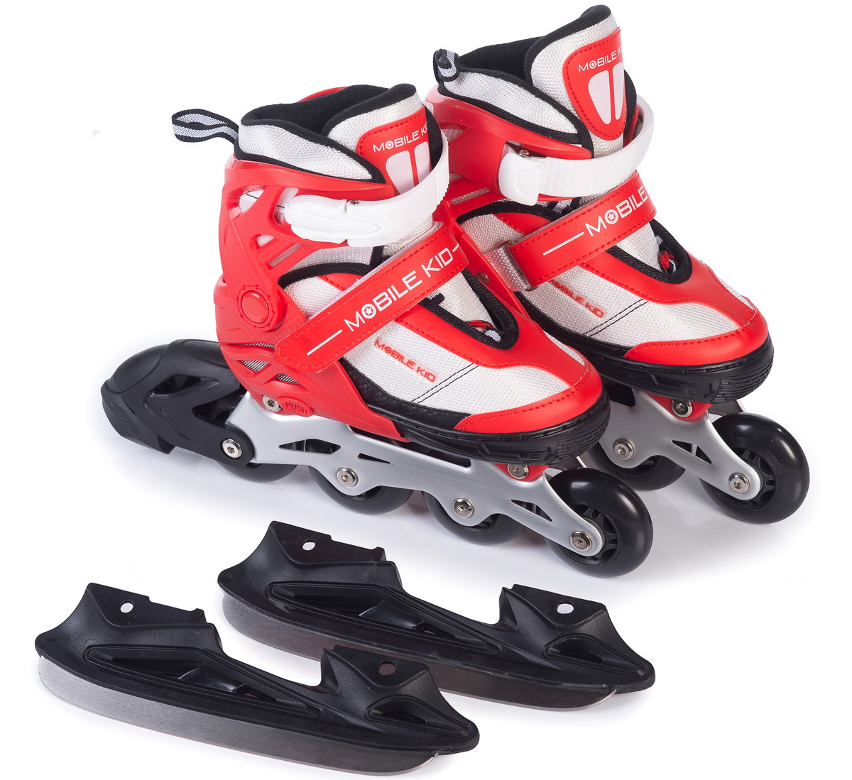 Коньки-ролики Mobile Kid Uni Skate 2 в 1 раздвижные размер M, red white