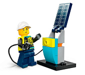 Забавные функции для творческой игры — дети могут открыть кабину, чтобы посадить минифигурку водителя, отрегулировать солнечные панели на воображаемой зарядной станции и подключить ее кабель к автомобилю.