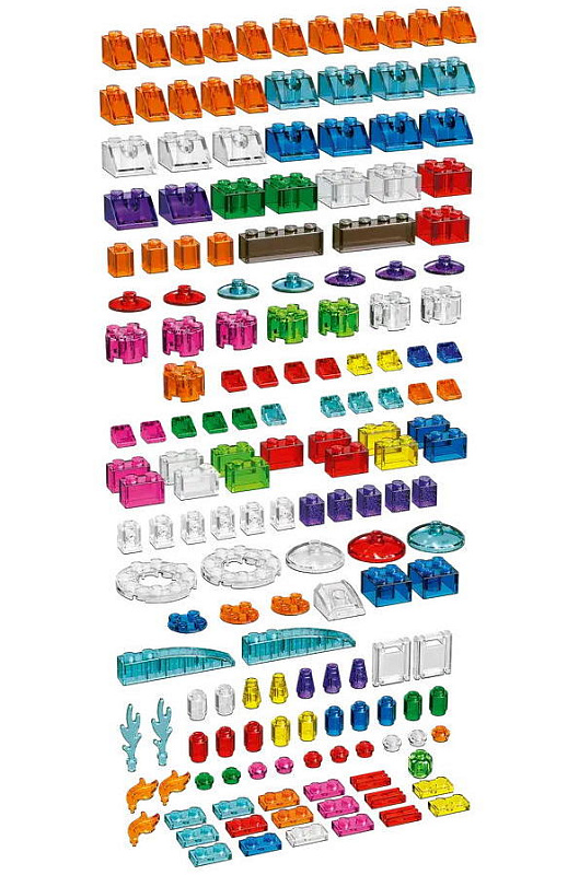 В набор LEGO® Classic Creative Creative Transparent Bricks (11013) входит великолепное множество прозрачных деталей LEGO всех цветов, форм и размеров, а также захватывающий выбор классических кубиков, деталей, глаз и колес LEGO. Все, что нужно детям для бесконечных часов творческой игры.
