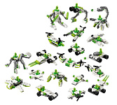 Также включает в себя: робот, турбореактивный самолет, реактивный самолет, вертолет, космический истребитель, космический челнок, гоночный автомобиль, электрический танк, радиоуправляемая машина, картинг, подводная лодка, черепахобот, двуногий робот, шагающий робот, скорпион и шагающий робот-паук.