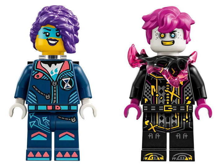2 минифигурки LEGO® DREAMZzz™ – фигурка героя Зои и темный двойник Купера Дупер помогают оживить действие; Зои крепится к спине кота и поставляется с аксессуаром в виде стреляющего лука
