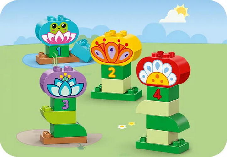 Садовые строительные игрушки для детей дошкольного возраста – LEGO® DUPLO® Town Творческий сад и цветы, сложенные в стопку, поощряют свободное строительство и открытую творческую игру.
