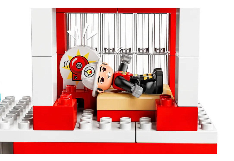 Оживленная пожарная станция — набор LEGO® DUPLO® Rescue Fire Station & Helicopter (10970) наполнен дружелюбными персонажами, веселыми занятиями и множеством возможностей для развивающих ролевых игр.