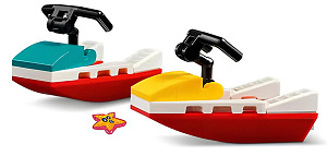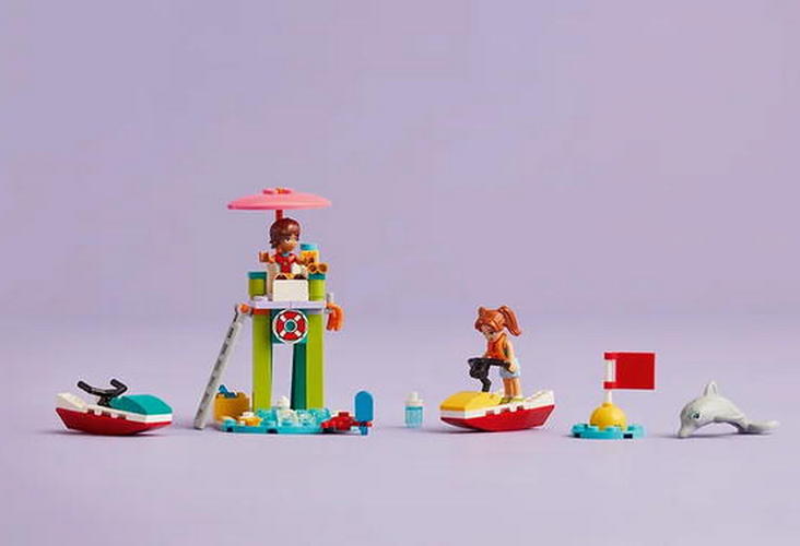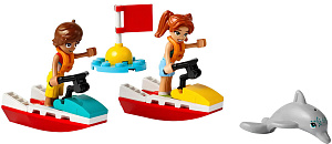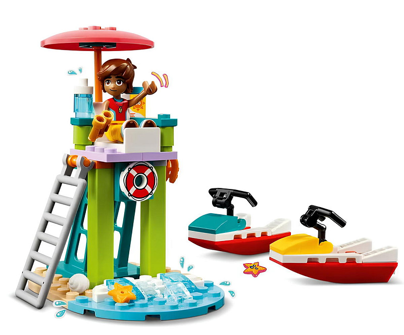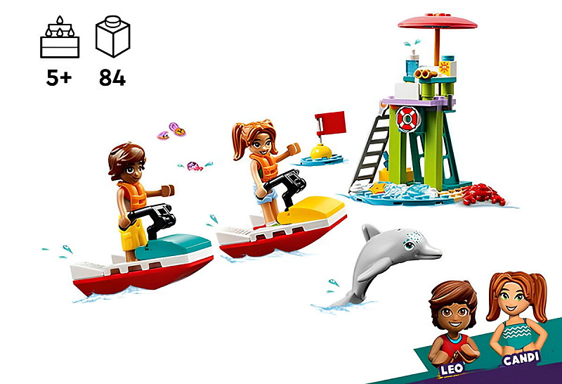 Этот набор спасателей LEGO поставляется с 2 игрушечными аксессуарами для водных скутеров, чтобы дети могли разыгрывать историю. Лео работает спасателем и использует бинокль, чтобы следить за океаном. Это также идеальная точка обзора для наблюдения за дельфинами. Позже он присоединяется к своей подруге Кэнди, и друзья гоняют на своих водных скутерах. Детям понравятся мелкие детали, например, нахальный краб, который любит совершать набеги на холодильник в поисках фруктового льда!