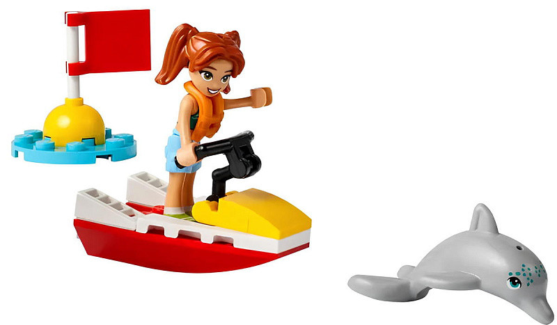 Игрушечный конструктор «Спасатель» с двумя мини-куколками и дельфином — поощряйте творческую игру с этим игрушечным водный скутером LEGO® Friends для детей, который поставляется с аксессуарами для ролевой игры.