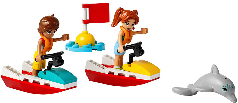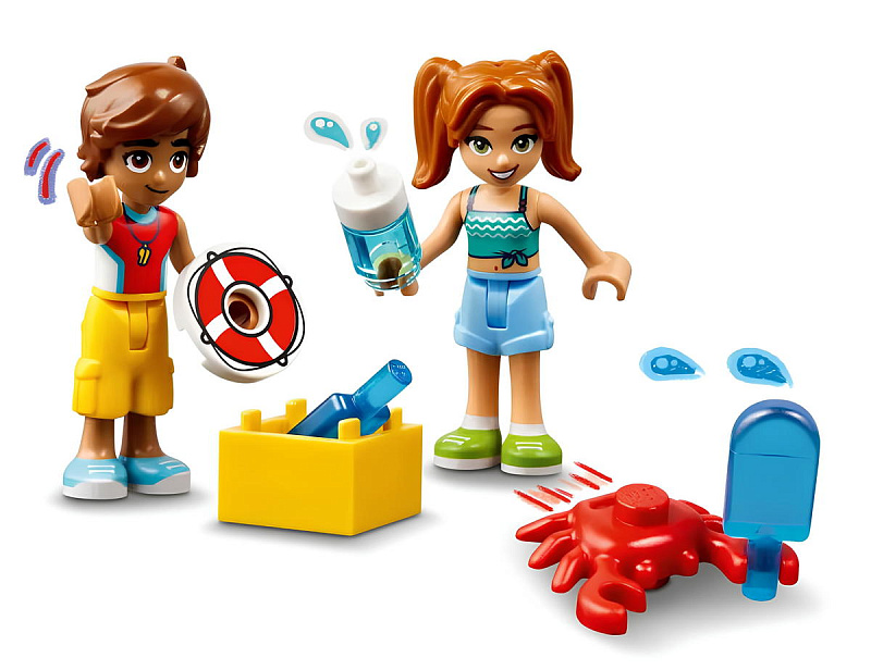 Включает 2 игрушечных водных скутера. В этот набор спасателей входят персонажи LEGO® Friends Лео и Кэнди, а также 2 водных скутера, чтобы дети могли придумать множество пляжных историй о Хартлейк-Сити для друзей.
