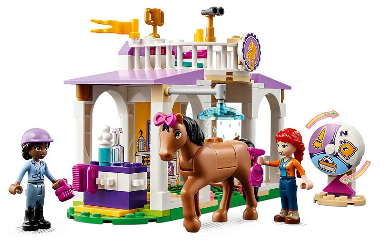 Дети от 4 лет и старше, которые любят лошадей и заботятся о животных, могут придумать множество воображаемых историй с этим конюшенным набором LEGO® Friends Horse Training 41746. Этот набор помогает детям учиться строить и поставляется с мини-куклами Алией и Мией, а также 2 персонажами-лошадями и аксессуарами для творческой игры. Дети могут исследовать отношения между Алией и мамой ее подруги, Мией, поскольку их связывает общая любовь к лошадям.