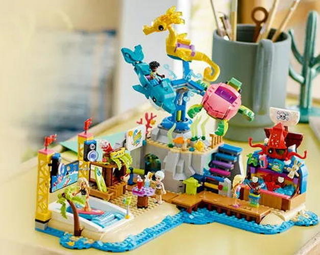 Размеры — Парк развлечений LEGO® Friends Beach имеет размеры более 10,5 дюймов (27 см) в высоту, 14,5 дюймов (37 см) в ширину и 13 дюймов (33 см) в глубину.