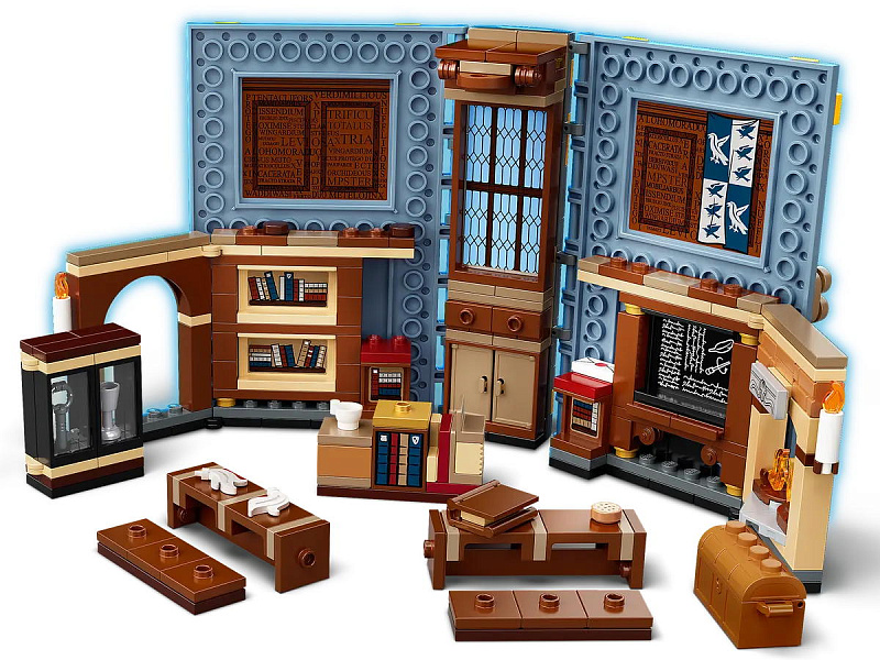 Включает минифигурки Гарри Поттера, Чо Чанга и профессора Флитвика, доску, книжную полку, камин, книгу заклинаний и множество оригинальных аксессуаров.