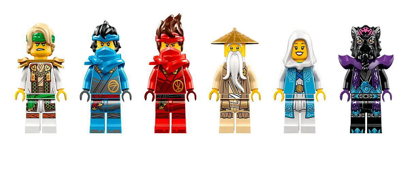 Эта сборная модель поставляется с 6 минифигурками персонажей NINJAGO: Мастер Ллойд с аксессуаром в виде посоха, Мастер Ву с аксессуаром в виде копья, Ния с 2 аксессуарами в виде мечей катана и парой ниндзя-сай, Кай с 2 аксессуарами в виде мечей катана и аксессуаром в виде меча, Эуфразия с аксессуаром в виде посоха и Лорд Рас с молотом. У детей есть все, что им нужно, чтобы разыгрывать захватывающие битвы ниндзя.